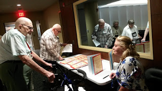On Thursday afternoon, September 8, I was fortunate to be in good company with the residents of The Armed Forces Retirement Home (AFRH). Some months ago, Christine Baldwin, Librarian of AFRH reached out to me and invited me to share my most recent book, Courage From The Heart (Our StoreLink). I didn't hesitate in accepting this opportunity to spend time with America's Finest, because it is one of my favorite things to do. The Armed Forces Home is one of America's oldest veterans' retirement homes The Soldier's home was established in 1851 as an "asylum for old and disabled veterans." Four of the original buildings still stand and are listed as national historic landmarks. My fifth and most recent book, Courage From The Heart evolved through years of inspiration from children, those individuals who had a lifetime of memories to share, and America's Finest...the men and women in uniform who serve in the United States Armed Forces. The presentation in this book remembers and pays tribute to the United States Army and Navy Nurses who were stationed at several U.S. base hospitals in the Philippines from 1941-1945. These women nurses that were sent into combat were strong, confident, and kind-their kindness was framed in courage. Beginning at 1:30pm, on the afternoon of September 8, I was greeted by residents of The Armed Forces Home, Washington, D.C. in their lovely theater where guest speakers often present. I knew only too well that my audience were experts in regards to the "time in history" of what I was intending to speak about. Because you see...they have lived these times and were a part of "The World War II Era." The two "R's," Reading and Research that were very much a part of my fifth book were indeed put to good use this very afternoon. The comments and questions from the residents that followed my presentation / discussion were precise, genuine, and so familiar to all who were in attendance. The dialogue that we shared about people and places from some seventy-six years ago was vivid, timeless, and very heartfelt. We so enjoyed this afternoon together.